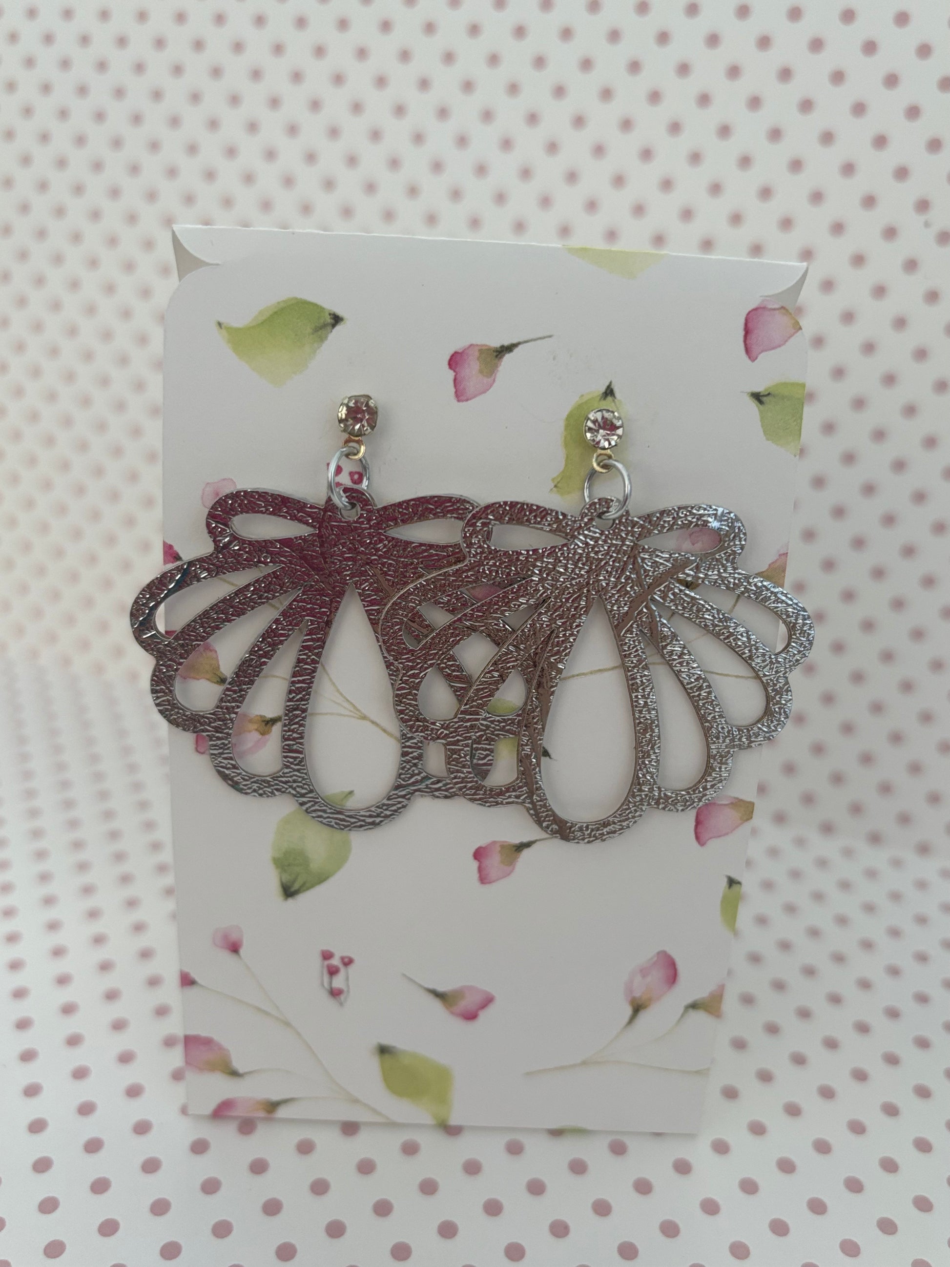 Chiusura argentata a farfalla con strass.
